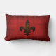 En röd sammetsliknande dyna med en Fleur de lis i gammalt guld