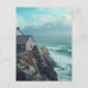 Digital konst med en medeltida stuga på en klippa med utsikt över havet. AI-genererad.