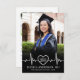 Celebrate the class of 2026! This heartbeat-themed graduation announcement card features a bold, modern design with a full photo background and a black gradient at the bottom for strong contrast. Over the gradient, white fonts and white artwork stand out beautifully, including a graduation cap illustration, the graduate’s name, school name, and date.