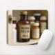 An old medicine bottle with a humorous label for seniors, placed in a medicine cabinet
