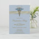 Medicinsk blå Caduceus Guld Rand Studenten Inbjudningar