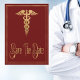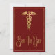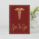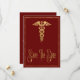 Faux guld-format med svart bakgrund skapar ett klassiskt modernt studenten-kort för att spara datumkortet. Perfekt för studenter att avsluta sina studier på läkarmottagningen, avtjäna sin sjuksköterskeexamen, nyfikningsceremoni och professioneller inom vårdbranschen. Om du inte sparar datumet i Doktor eller studenten finns det en faux guld caduceus-symbol tillsammans med en studentmössa. Skicka en studenten spara datumkortet till din familj och dina vänner. Röd bakgrund färg kan ändras till färg efter eget val.