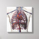 Medicinsk illustration av bröstet hos han med artärer, vener, hjärta och revben.