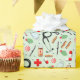 Kreativt medicinskt julpresentpapper med hälso- och sjukvårdsmaterial och julgodis.