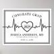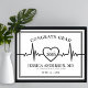 Denna hjärtfrekvens-tema examensfestskylt har en djärv svart-vit design, med en slående svart dubbel linje ram och en vit bakgrund, vilket ger en modern men tidlös touch. De klassiska serif-typsnitten och den rena, moderna typografin kompletterar EKG-hjärtlinjen perfekt, vilket gör det till ett idealiskt sätt att fira en examen från medicinskola eller sjuksköterskeutbildning. Medan den nuvarande designen är i svart och vitt, kan alla färger – inklusive hjärtfrekvenslinjen och bakgrunden – anpassas för att matcha skolans färger eller examenens favoritfärger.