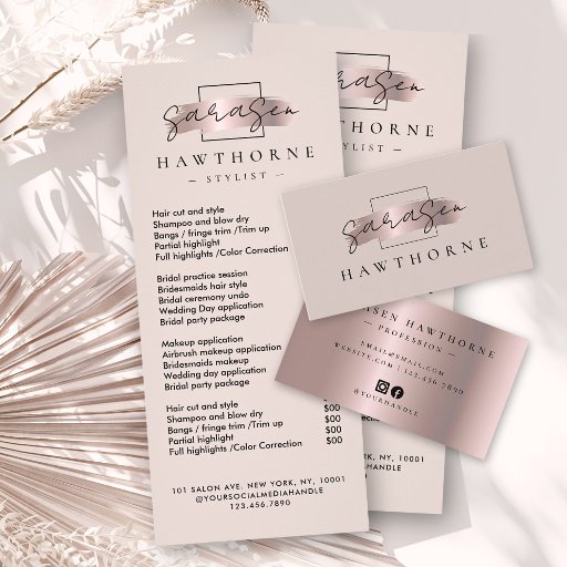 Chic Penseldrag Faux Ro Guld Elegant Dust Ro Social Media Icon Affärskort. Enkel att anpassa elegantens skripttypografi i monogram parad med klassisk serif-teckensnittsdesign. Ändra färg på medieikonerna i social och använd även redigeringsdesignen verktyg.