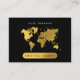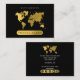 En vacker design med en världskarta över guld. Elegantens utformning kompletteras av guld och svarta accenter. Ett enkelt och professionell sätt att presentera ditt företag. Social-medieikoner som ingår i affärskortets utformning för använda. Anpassa dina uppgifter för att skapa ditt eget unika affärskort. Ett affärskort för perfekt för företag som har att göra med resor till agent, biljett, bokning, semesterorganisation.