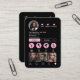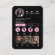 En snyggt och pulserande layout designad för hårstilistorna, med ett modernt social-profiltema, feta rosa-ikoner och en skannerbar QR-kod för enkel åtkomst till onlinen. Innehåller fotofack och all nödvändig kontaktinformation.
