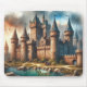 Ett medeltida slott med andlig fart står bredvid en serenflod, eftersom den gyllene solnedgången målar en fantastisk atmosfär