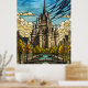 Medieval Castle over Canal Stained Glass Art Illus Poster