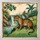 En leopard med enkelt linjearbete och en antydan om gult och brunt, som betonar elegans i ett medeltida konstnärligt sammanhang.