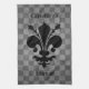 Grungy punk schackbräde mönster i grått-toner med en ovanligt elegant royal svart fleur de lis på en söt skålhandduk. Du kan också lägga det här på väggen med hjälp av dubbla sidoband.