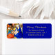 God jul Returetiketter skapat med en medeltida belyst manuscript-bild. I Religiösa i Vintagen är julillustrationen Epiphany-scenen: den unge Jesus Kristus och hans Heliga Mor, den välsignade jungfru Mary, i Betlehem, med Aoration of the Magi, de tre Kungarna som kom från Orient till Aproore Baby Jesus, Guds son, i mangaren. Du kan anpassa dig med adress. Underbar guld-blå elegant kristna katolska julklappar-returetiketter för dina julkort och inbjudningsventiler. God jul!
