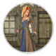 Ta ett steg tillbaka i tiden med denna fantastiska utformning med en medeltida dam som på ett beundransvärt sätt går genom en gammal stad. I en underbar, renaissance stil, förkroppsligar hon Mitten Ålders skönhet och charm. Med kullstensgator och historisk arkitektur som bakgrund fångar denna scen den romantiska essensen i medeltiden. Perfekt för historieentusiaster, renaissance festival fläkt eller någon som kärlek den estetiska skönheten i en förlegad era.