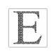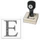Träet frimärke med monogramkapitalet brev ’E’, förskönat med ett medeltida dammmönster
