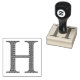 Träet frimärke med monogramkapitalet brev ’H’, förskönat med ett medeltida dammmönster