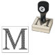 Träet frimärke med monogramkapitalet brev ’M’, förskönat med ett medeltida dammmönster