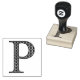 Träet frimärke med monogramkapitalet brev ’P’, förskönat med ett medeltida dammmönster