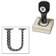 Träet frimärke med monogramhuvudstaden brev ’U’, förskönat med ett medeltida dammmönster