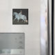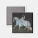 Pristinvit medeltida rider på en vacker vit häst. Tillgängliga matchande inbjudningar, vykort och magneter för endast bild eller "spara-the-date" frimärke samt vykort för spara-till-datum.