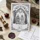 Embark on a fairytale journey with this enchanting medieval-themed 'Save the Date' card. Featuring a noble knight and his bride standing before a gothic archway, flanked by majestic dragons and a mystical unicorn, this design evokes a sense of timeless romance and adventure. The intricate hand-drawn style, reminiscent of ancient scrolls and tapestries, makes it a unique choice for couples planning a fantasy-inspired or Renaissance-themed wedding. Announce your special day with a touch of magic and historical charm.