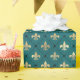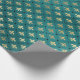 Vackra faux guld glitter Medieval-stil fleur de lis mönstrade Wrapping Papper på djup teal bakgrund. Lägg till elegans och klass i presentationen. Lämpligt för tillfällen.