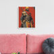 Bilden visar en medeltida janissär krigare som står mot en röd bakgrund. Han är klädd i pansar, med en gult turban och en röd scarf. Han har ett svärd i sin höger hand och en i sin lämnat. Krigarens uttryck är allvarligt och hans inställning är säker. Bakgrunden är enkel röd med en del blekt gult och vita accenter som skapar en känsla av ålder och historia.