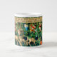 Kaffe Mugg med William Morris' tapestry Verdure with Hjort and Shields (1891-1894). En verdant scen där hjort dricker från bassäng i vatten och äter från löv av träd i en grönt skog. Ovanför dem, häng sköldarna från Bord vid Knight. En fantastisk gåva till Arthuriana-entusiaster och Victorias konstsamlare.