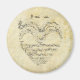 På en parkeringsbakgrund, en ovanlig hjärtformad medieval musikmanuskript, Cordids kod till en som är "Bonne, belle, et sage", som är Fransk för "bra, underbart och klokt".
