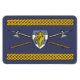 Sena medeltida polaxer korsas bakom en värmeformad sköld med en heraldisk lejon i den ursprungliga utformningen av Richard H. Fay.
