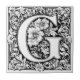 Medieval Illuminated Brev G Ceramic Tile A black and white vetor illustration of the brev i en utvecklad medeltida stil, skapat i stil i Albrecht Dürer. Utformningen är en kvadrat med en stor motiv för den centrala blommigten omgiven av symmetriskt geometriskt mönster och snurrar.