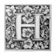 Medieval Illuminated Brev H Ceramic Tile A black and white vetor illustration of the brev i en utvecklad medeltida stil, skapat i stil i Albrecht Dürer. Utformningen är en kvadrat med en stor motiv för den centrala blommigten omgiven av symmetriskt geometriskt mönster och snurrar.