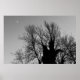 En atmosfärisk svart och vit bild av en träd-silhuett mot en vintereftermiddag himlar med en halv måne. Träd verkar personifiera en konstig naturanda som dansar efter någon slags medeltida musik.