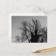 En atmosfärisk svart och vit bild av en träd-silhuett mot en vintereftermiddag himlar med en halv måne. Träd verkar personifiera en konstig naturanda som dansar efter någon slags medeltida musik.