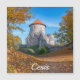 Höstlandskapet av fästning med torn omgiven av gult och orange träd. Cesis castle i Lettland