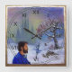 En drake under snö. Surreal och symbolisk miniatyr oljemålning om trä 2007 av Alessandro Lumini i Blå vitt, grått brun färg.