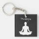 En minimalistisk svartvit design med en silhuett av en person som mediterar med ord "Manifesting" ovan. Perfekt för andlig tillväxt, manifestation, mindhet och meditationsteman