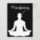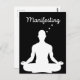 En minimalistisk svartvit design med en silhuett av en person som mediterar med ord "Manifesting" ovan. Perfekt för andlig tillväxt, manifestation, mindhet och meditationsteman