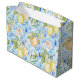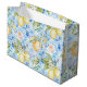 Mediterranean lemon floral design in a blue yellow white palette with tile-inspired details. Blending French and Italian charm, it adds a fresh, elegant touch to your gift wrapping for any occasion.