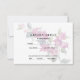 Ett elegant bröllopsvar RSVP-kort med en akvarell- Medelhavs bougainvillea-gren i rosa och burgundy med lite grönska.