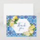 Elegant modern akvarell Citron blomster Blå Platta tack-kort.