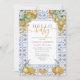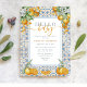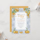 Bring the warmth of the Italian coast to your celebration with our Mediterranean-inspired baby shower invitation, where timeless charm meets modern elegance. A stunning background of watercolor maioliche tiles in rich blues with soft orange accents sets the scene, beautifully echoing the hand-painted oranges that delicately adorn the design. The artistic details feel sun-drenched and joyful, while the clean, modern typography adds a refined contrast that keeps the overall look sophisticated rather than busy. An elegant white rectangular frame allowing the customizable text to stand out with clarity and grace. Our invitation blends vibrant Mediterranean character with polished contemporary style, making it perfect for a chic, unforgettable baby shower celebration.