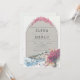 This romantic arched wedding invitation features soft watercolor artwork of a seaside village, blooming bougainvillea florals, and a refined neutral color palette—perfect for destination weddings, Italian coast celebrations, and Mediterranean-inspired ceremonies.