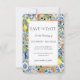 Announce your big day in style with this stunning vibrant Mediterranean lemon tile pattern save the date card, combines classic blue ceramic motifs with fresh citrus elements and delicate watercolor florals. Featuring bright yellow lemons, olive branches, and intricate tile details, this design captures the warmth and beauty of coastal European style, perfect for a sophisticated and memorable celebration.
