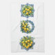 This kitchen towel is shown in a lovely mediterranean tile lemons art print.
