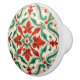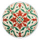 The design showcases a traditional hand-painted Mediterranean tile pattern with delicate motifs, swirls, intricate singular botanical designs in green and red colors.
