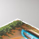 Transport yourself to the beautiful Greek Isles with this idyllic scene! The artwork features a rustic, arched window frame, painted in warm terracotta and stone textures, opening up to an absolutely breathtaking coastal vista.