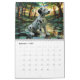 A dog calendar featuring 3d images of twelve medium sized dogs with aesthetic backgrounds.