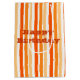 Medelstor papper presentpåse med orange och vitt rand. Texten kan vara personlig vid ett särskilt tillfälle eller så går det inte att ta bort texten. Det vita rand kan ändras till vilket färg som helst. Presentpåse för designers födelsedag med anpassade alternativ.