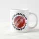 Cricket Ball image / picture / photo 20 oz. custom Giant Mug with personalized text (OPTIMIZED FOR MEDIUM SIZE TEXT AS DISPLAYED). The perfect gift for a cricket fan or cricket player. Customize upper and lower text on the front and the back of the mug by clicking 'Personalize this template'. Create your own birthday or Christmas gifts for a tennis lover or sports enthusiast and design your own Christmas stocking fillers or just a great customizable gift for yourself.